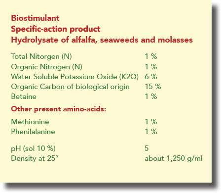 it improves the resistance to nutritional physiopatologies, it accelerates the production, it increases yield and quality; it improves the sprouting.